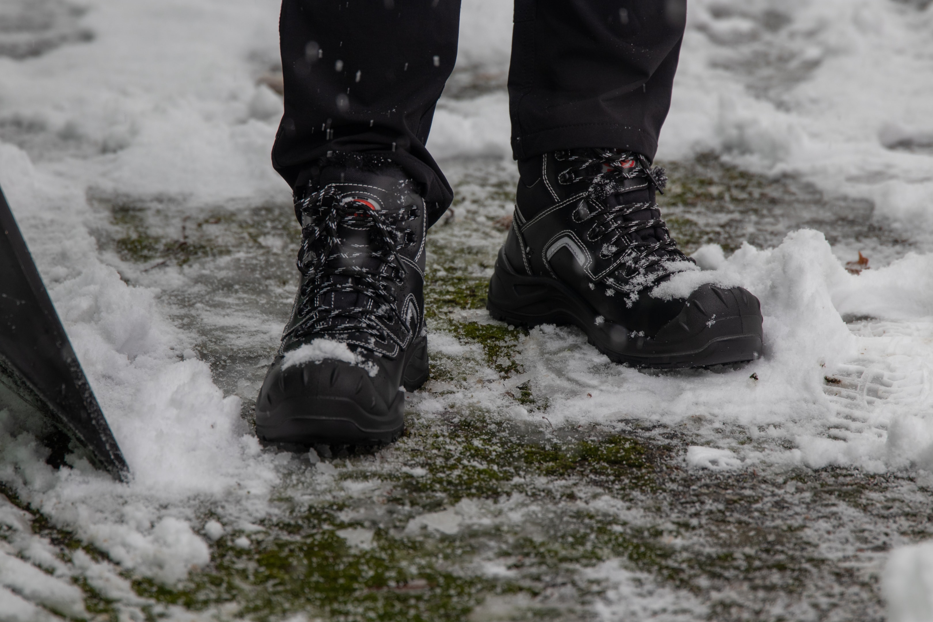 Зимни обувки за работа със стоманено бомбе и противоплъзгаща подметка.