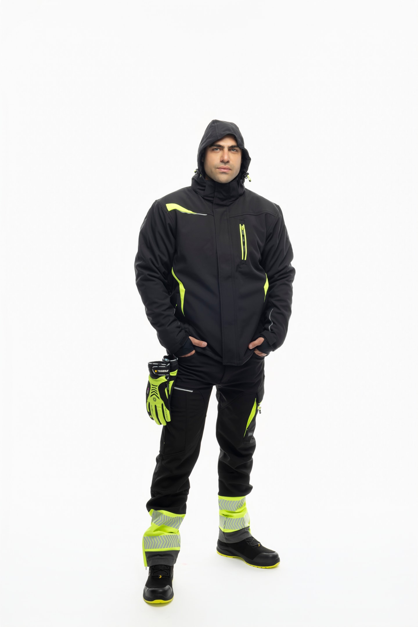 Зимни якета, панталони, полугащеризони, ръкавици и аксесоари могат да бъдат произведени в съответствие със стандартите за висока видимост (Hi-Vis). Това означава използване на флуоресцентни цветове като оранжево, жълто или лайм-зелено, комбинирани със светлоотразителни ивици.